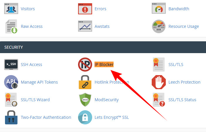 Go to the hosting that you are subscribed to and then to cPanel. You will go to the bottom. You will find the “IP Blocker”, click on it.