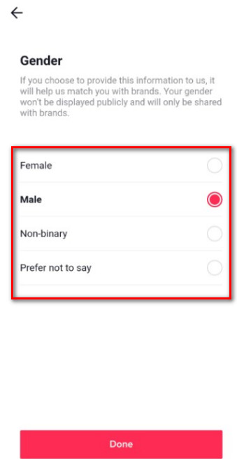 Select your gender. Male or Female.